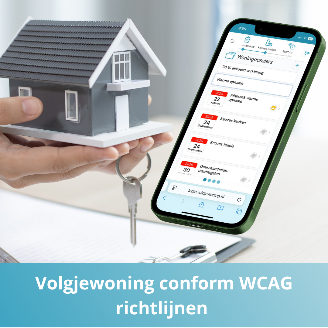 Zowel woningcorporaties als huurders regelen steeds meer digitaal. Sinds juni zijn WCAG 2.1-richtlijnen verplicht voor digitale omgevingen van woningcorporaties. Denk aan huurdersportalen, websites en andere systemen. Dit houdt in dat de digitale omgeving voor alle huurders toegankelijk moet zijn, teksten en interfaces begrijpelijk moeten zijn voor een breed publiek en dat visuele elementen voldoende contrast moeten hebben. De WCAG richtlijnen zijn ingevoerd zodat mensen met een (tijdelijke) beperking, ouderen of digitaal minder vaardige mensen geen problemen zullen ervaren om zaken rondom hun huurwoning te regelen!